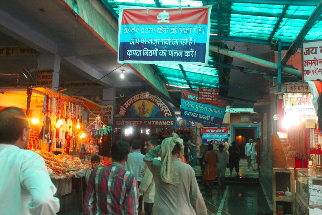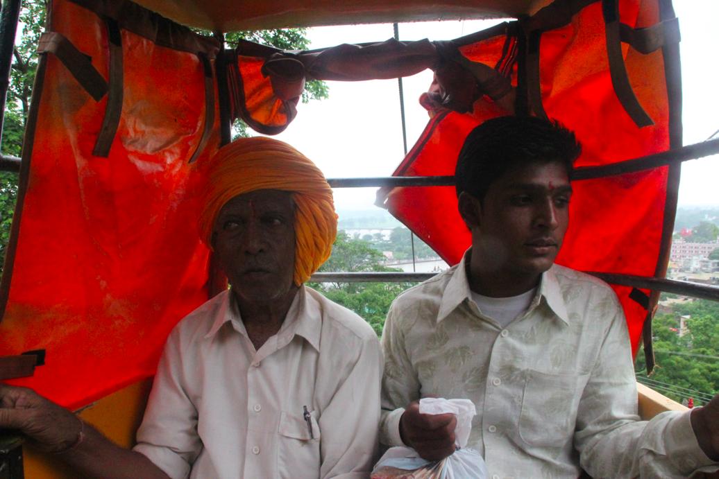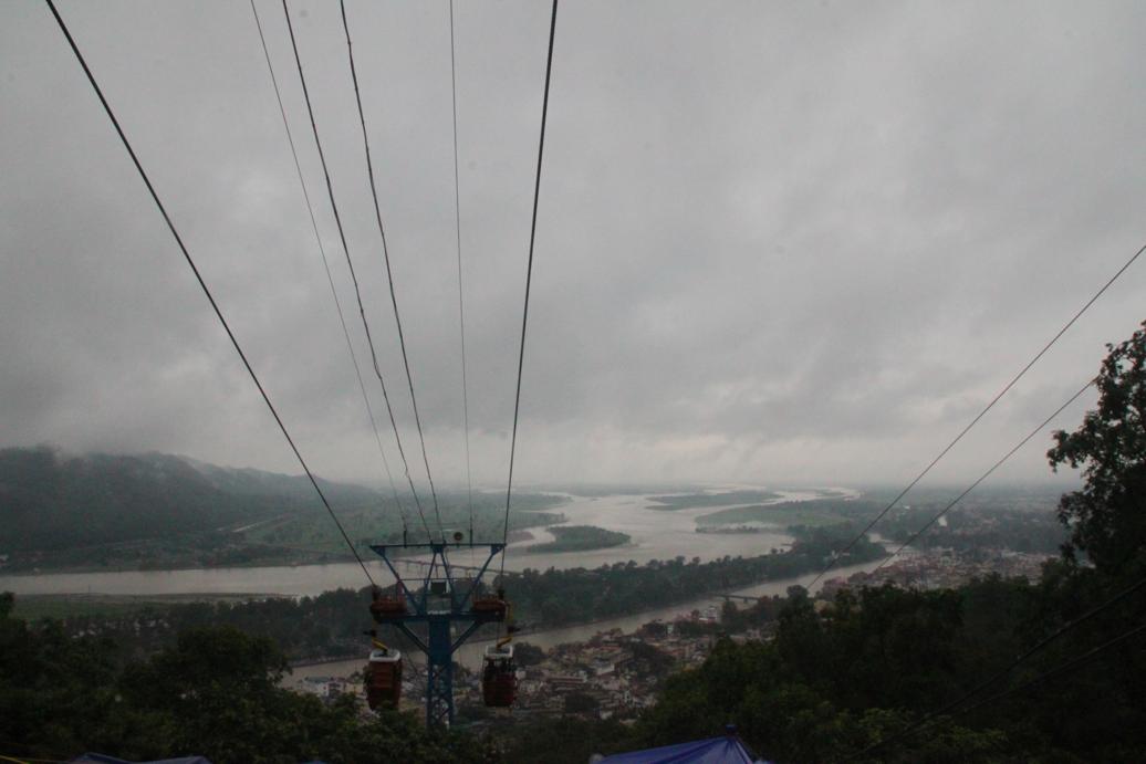 そこを眺めた後、マンサー・デーヴィ寺院がある山に行く。雨も降っていたし、山を2時間歩く気分でもなかったので、ロープウェイで50RS払って頂上へ向かった。