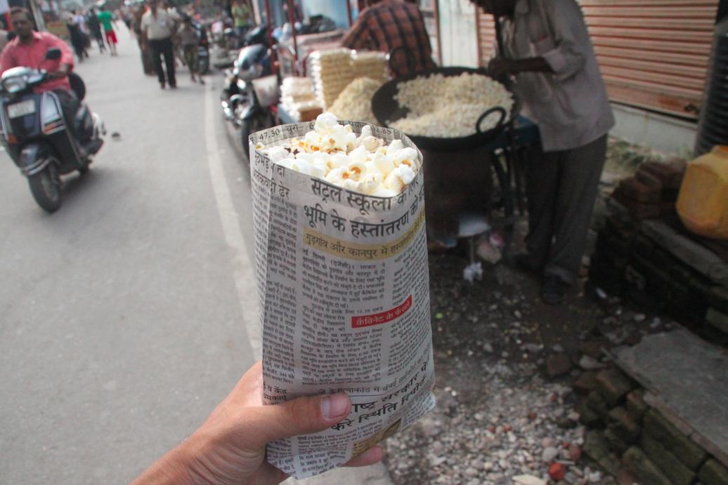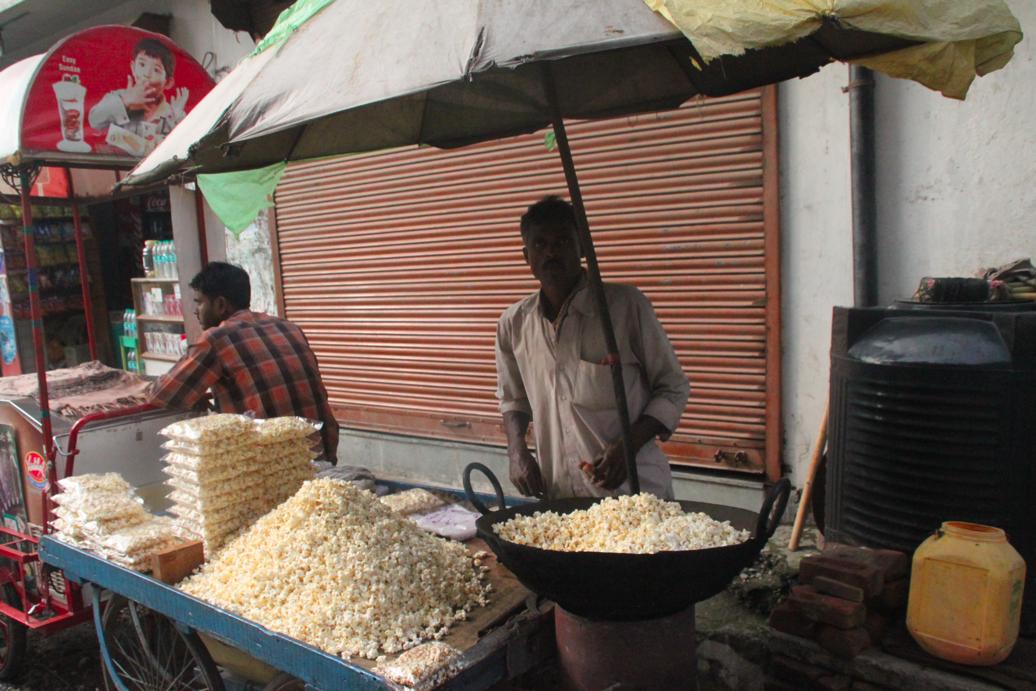 屋台で作っているポップコーン買って食べ歩きしたりして。ちなみにこれは10RS(18円)くらい。