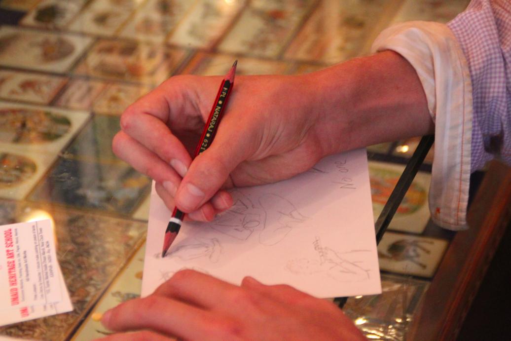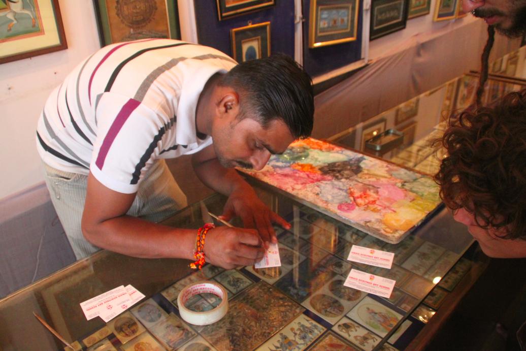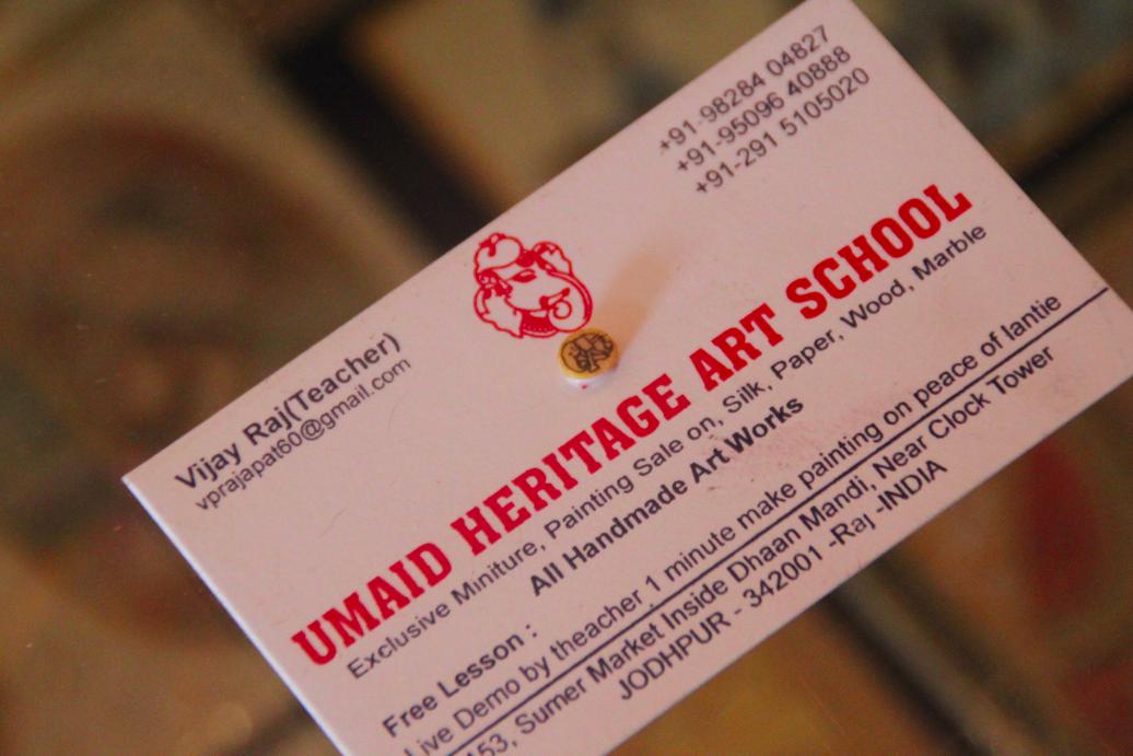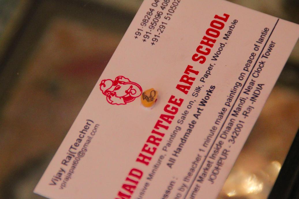 最後に、Virayさんにプレゼントをもらった。本当に本当に器用。Virayさんのお店は生徒に無料で絵を教えている。そして、できた絵をこのお店で販売することができる。今回の旅では通うほどの時間はなかったけれど、またジョードプルに訪れたときに教えてもらいたいと思った。
