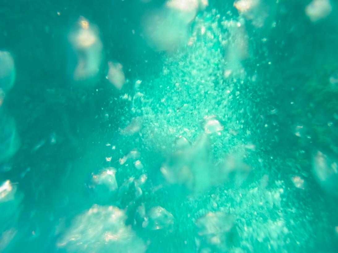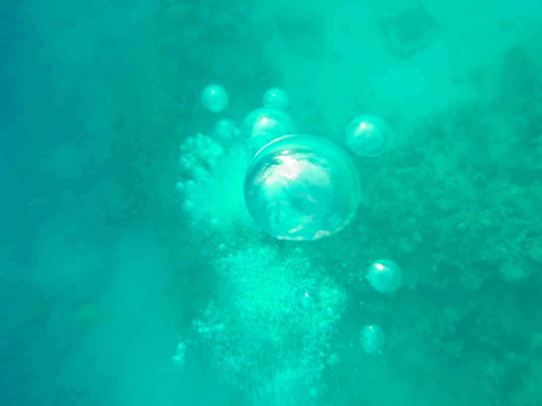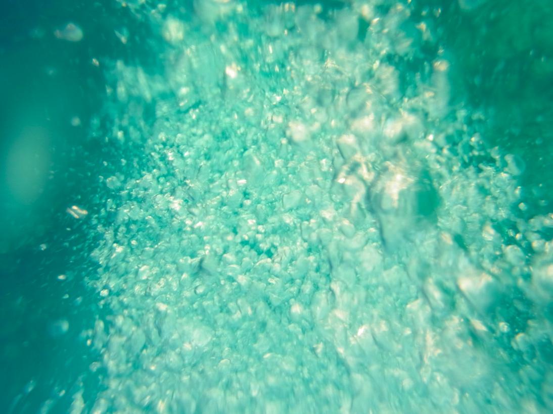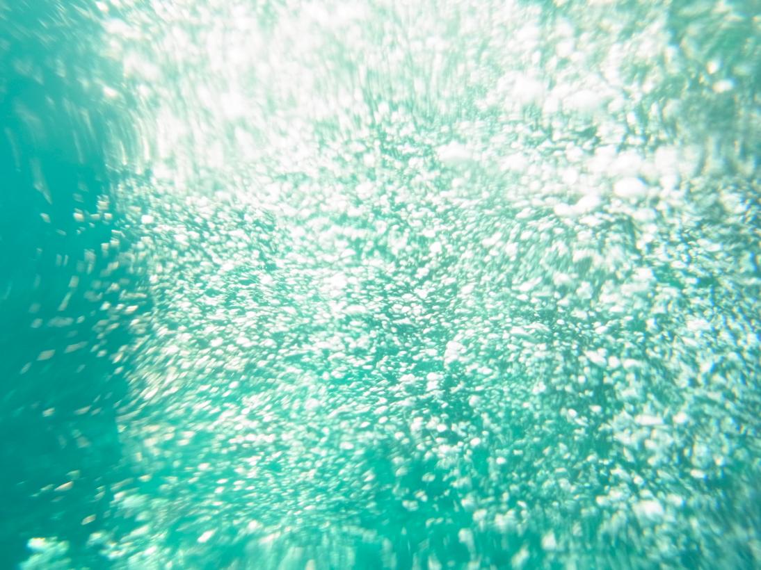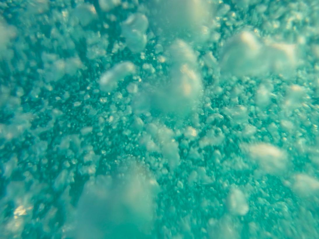 カメラによくあるパッキンみたいなのをつけて、海に浮かびながら。気泡撮るの楽しい。
