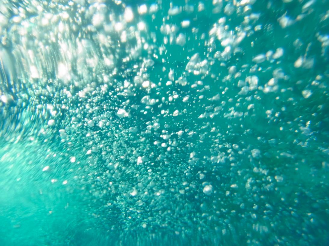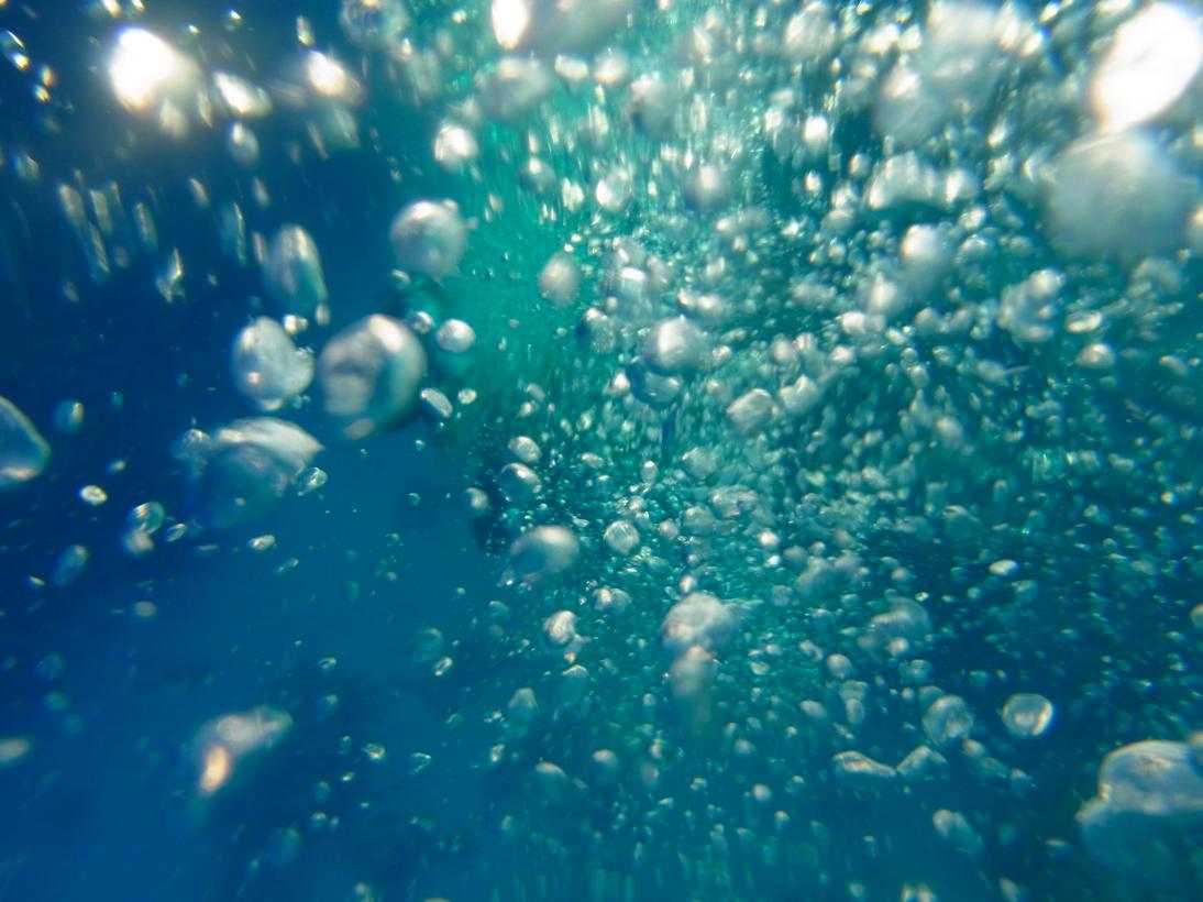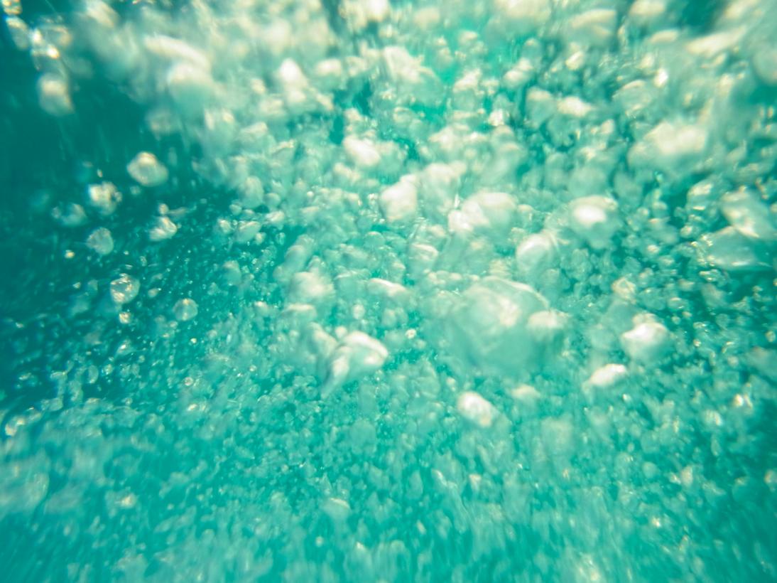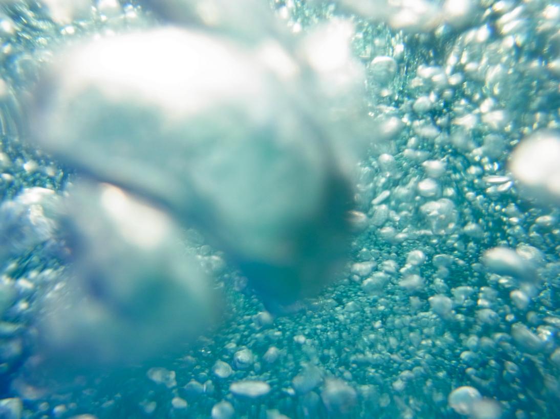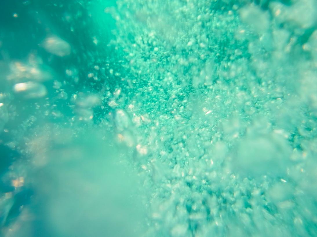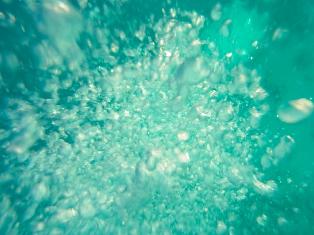 カメラによくあるパッキンみたいなのをつけて、海に浮かびながら。気泡撮るの楽しい。