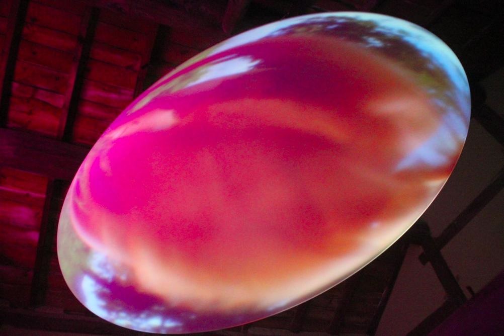 これも瀬戸内アートの一つ。円状の平の板に、円を回るようにして映像が動く。花の映像だったり、人の体の中だったり。瀬戸内アートの展示は、一つ300円くらいのお金を支払って見ることができる。オフシーズンだったので、一日50〜100人くらいの人らしいが、オンシーズンの時、瀬戸内国際芸術祭の芸術祭の時は、数えきれない人が来たという。
