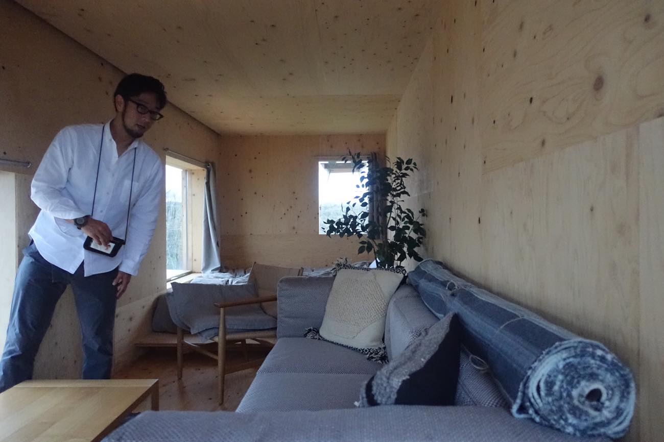取締役の小杉さんに、隈研吾さんが手がけたトレイラーハウスに案内していただいた。