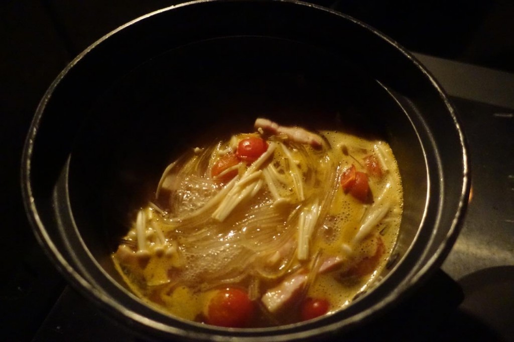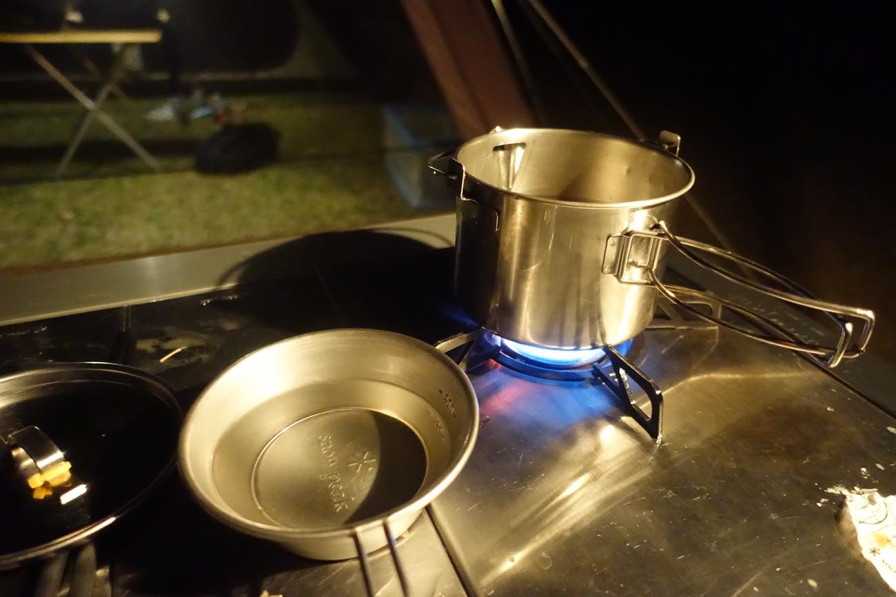 夜中の1時半くらいに、全ての木が火が弱い炭に変わり、寒くなってきた。白湯を飲んで、眠りについた。